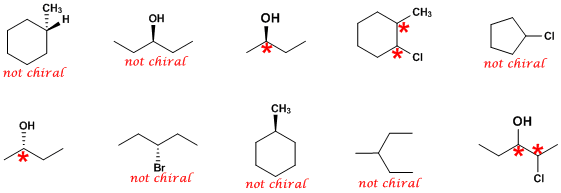 Star (*) each asymmetric carbon atom in the following examples, and determine whether it has the (r) or (s) configuration. Star (*) each asymmetric carbon atom in the following examples, and determine whether it has the (r) or (s) configuration. This is because these molecules contain a central carbon atom attached to an amino group, carboxyl group, hydrogen atom and a variable side chain. A carbon atom that is bonded to four different atoms or groups loses all symmetry, and is often referred to as an asymmetric carbon. Example of chiral carbon : This type of central carbon atom can also be known as a chiral carbon. A carbon atom is asymmetric if it has four different chemical groups attached.